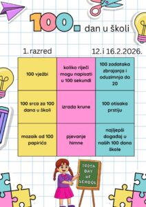 13. i 16. veljače 2026. učenici 1. razreda obilježili su poseban i veseljem ispunjen dan – 100. dan škole u sklopu međunarodnog eTwinning projekta.