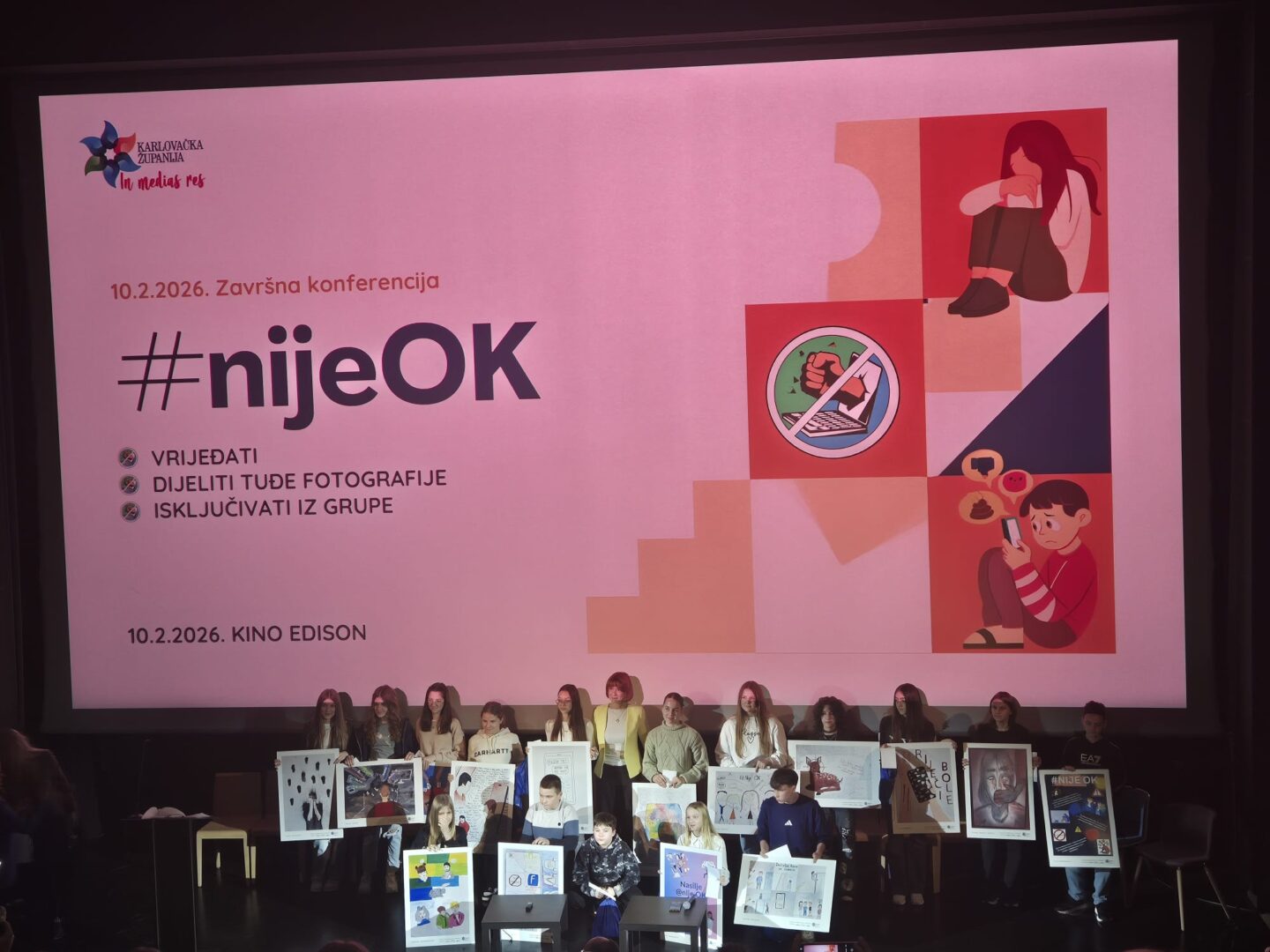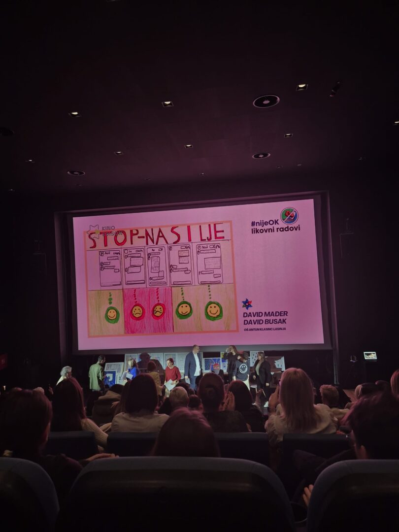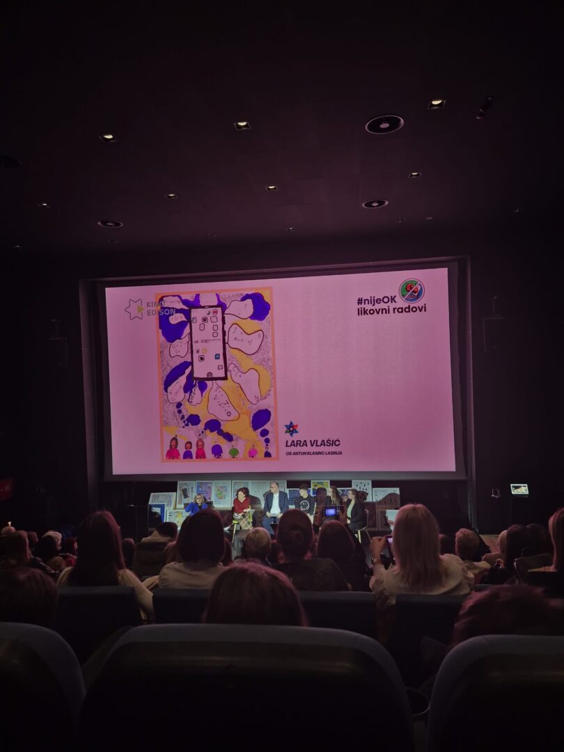 Jučer, 10. veljače u kinu Edison je bila završna konferencija koja se sastojala od panela, dodjele nagrada učenicima čiji su likovni radovi izabrani kako najboli vizuali glavne teme projekta (nije ok vrijeđati, dijeliti tuđe fotografije, isključivati iz grupe) te izjave za medije i druženje.